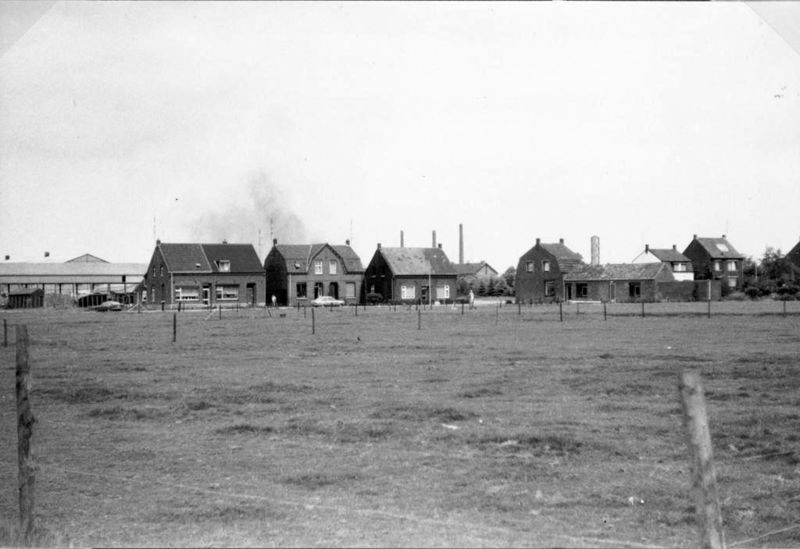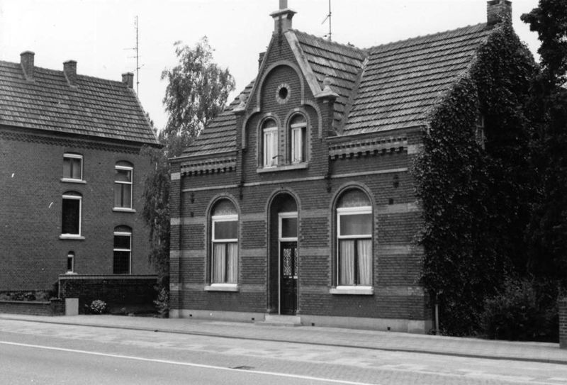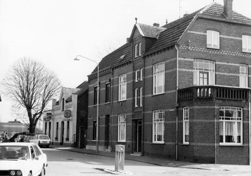 Stationstraat met rechts fabrikantenwoning Trienekens en verderop café 't Trefpunt. Ten tijde van H. Trienekens was dat café van Rollbröker. |