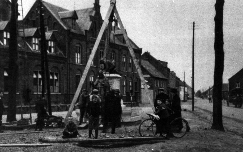 Diversen | Plaatsing van het beeld, ontworpen door August Falize, op het Dominicanerplein in Reuver in 1927. Het ontwerp van het beeld werd vergroot bij Cuypers en Co in Roermond door Hein Maessen en gegoten bij de Fonderie Nationale des Bronzes J. Petermann in Brussel. Het voetstuk is afkomstig van de firma Georges Stienon in Roermond. Rechts staan pastoor Viegen en Sjang Steeghs toe te kijken. Sjang Steeghs was als gemeenteraadslid direct betrokken bij het 2 jaar durende gebakkelei in de gemeenteraad, Meer ... | Pastoor Vranckenlaan 3 | Reuver | 1-5-1927 | 1927 | |||