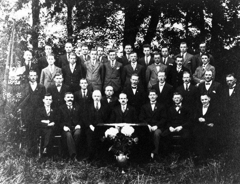 Het Reuvers Mannenkoor 1933 bij het dertigjarig bestaan. Zittend: Joep Paquay, Handrie Mobers, E. Hermans (dirigent), Willem Görtz (voorzitter), H. Konings, Fried Houwers, H. van Lieshout. 1e rij: Frits Niemans, Frans Erdkamp, Leike Wolters, Baerke Steeghs, Hein Peulen, Willem Naus, Maan Naus, Bert Peeters, Sjang Geelen. 2e rij: Graet Heinen, Sjors Paquay, Toën Houwers, Piet Roets, Thei Veldman, Willem Levels, Sef Houwers, Willie Wolters en Sjra Wolters. 3e rij: Guus Levels, Albe Meer ... |