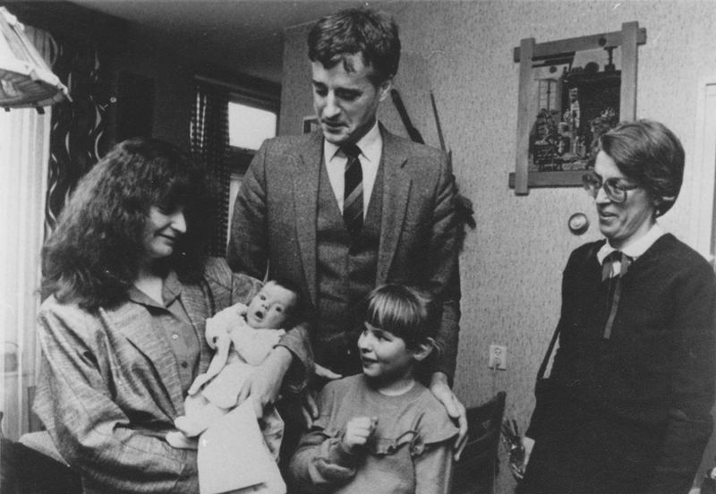 Tim Claassen 12000ste inwoner van Reuver met Nina Ravier 11000ste inwoonster van Reuver. Rechts burgemeester Nuytens en mevr. Nuytens. |