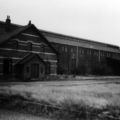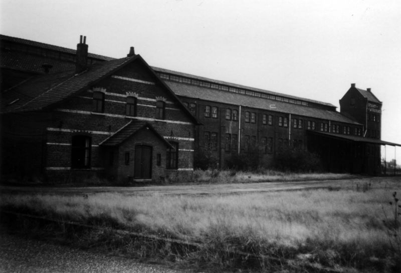 Janssen-Willemsen in de steigers. Op de voorgrond gemaaid koren. Naderhand diende dit terrein als opslaglager voor gresbuizen. |