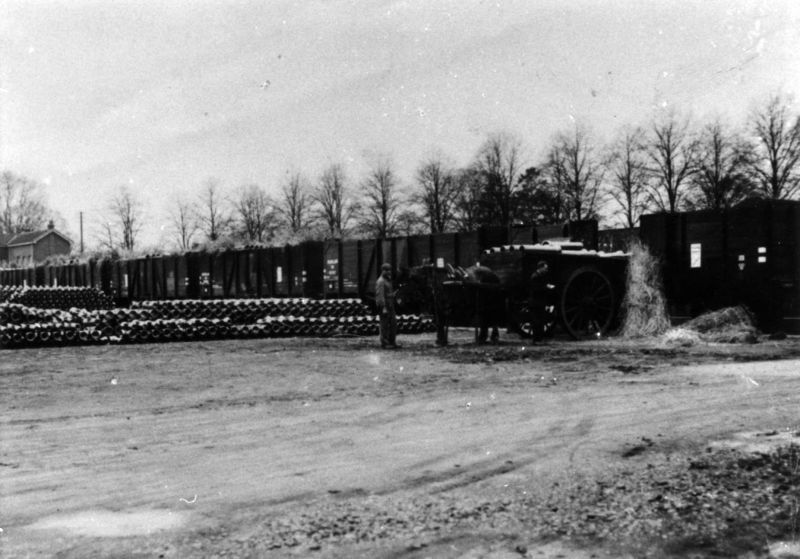 Fabrieken / Bedrijven | Het laden van gresbuizen in treinwagons vanaf het lager bij Janssen-Willemsen. Op de achtergrond de Wilhelminalaan en het station. | Greswarenstraat 3 | Offenbeek | 1937 | ||||