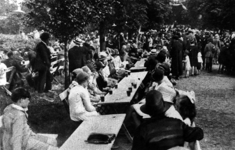 Verenigingen en organisaties | Foto gemaakt t.g.v. het 75-jarig bestaan van Harmonie St. Cecilia in Swalmen in juli 1927. Dat het feest geslaagd is, toont deze foto wel. Een gezellige drukte in de parken en lanen van kasteel Hillenraadt. | Hillenraederlaan 14 | Swalmen | 1927 | ||||