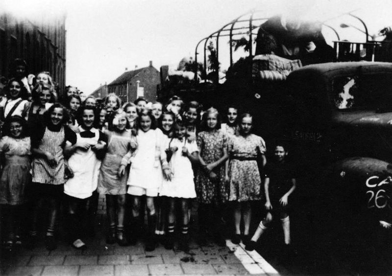 Amerikaanse legertrucs staan klaar om de paters Dominicanen te verhuizen naar Nijmegen in sept. 1945 |