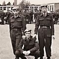Oorlog | Vertrek naar Nieuw Guinea vanuit de Frederick Hendrik kazerne in Blerick . Rechts Ton Peeters en knielend Sjra Wanten | Reuver | 1946 | |||||