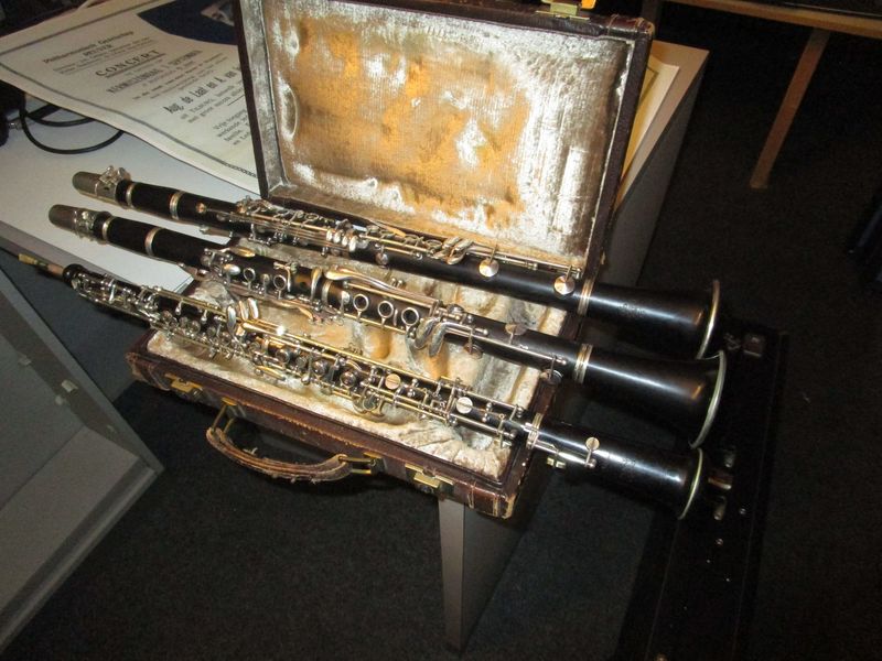 Ter gelegenheid van het feit dat het Philharmonisch gezelschap in 2020 150 jaar bestaat heeft de werkgroep bijzonder activiteiten van de Heemkundevereniging Maas en Swalmdal, in samenwerking met de Harmonie, een etalage ingericht in het oude gebouw van de apotheek waarin ze beelden laten zien over het verleden van de Harmonie. Enkele oude klarinetten die gebruikt werden door de harmonie. |