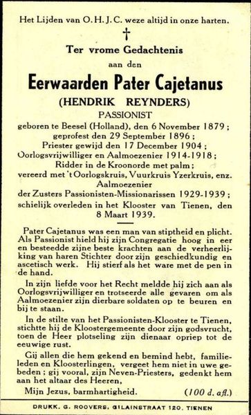 Kerk en religie | Het bidprintje van pater Cajetanus (Hendrik Reijnders). Hij overleed op 8 maart 1939. | Kesselseweg 43 | Reuver | 8-3-1939 | 1939 | |||