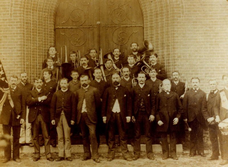De oudste foto van het Philharmonisch Gezelschap Reuver, gemaakt t.g.v. het 20 jarig bestaan. 1e rij: Sieb Steeghs(vaandeldrager), Jean Heines(dirigent), Louis Wolfs, Herman van der Velden, Frans Vogels (president), Joseph Cuypers, Arnold Niemans, Frans Evers, Frits Lina, Hens Geyzen. 2e rij: Piet Heines, Herman Bors, Jos Niesen, Gerard Zaeyen, Coen Timmermans, Henri Bors, Graat Peeters. 3e rij: Antoon Houwers, Willem Augustus, Sjang Sanders, Piet Peeters, Hubert Bors. 4e rij: Thei Niesen Meer ... |
