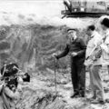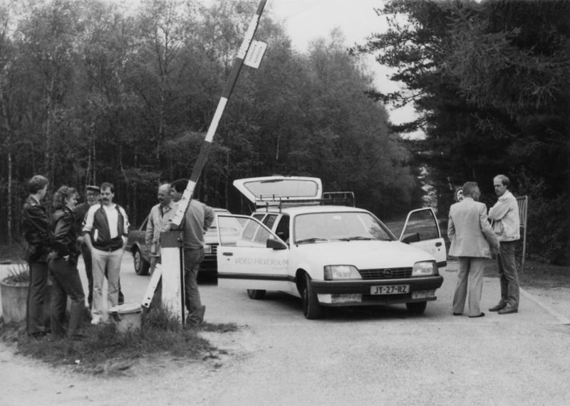 Terug van de opname in de kleigroeve. Het gezelschap in gesprek met de douane nabij de Witte Steen. Opnamen NOS van Gewest tot Gewest. |