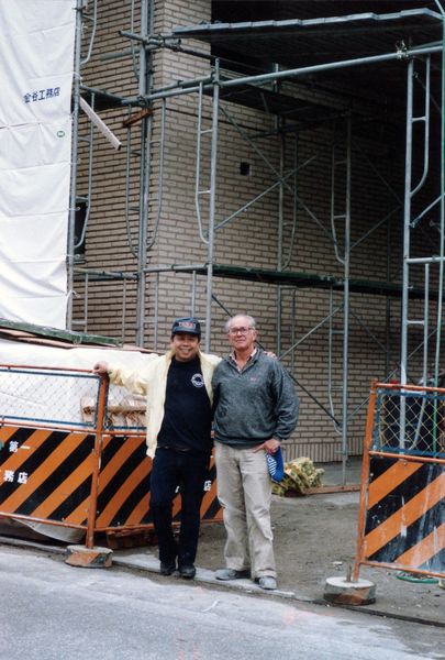 Reuverse steenstrips van Brickburgers sieren Japanse muren. Aannemer Tanaka en voeger Lowie Beurskens voor de nog in de steigers staande Japanse showroom. |