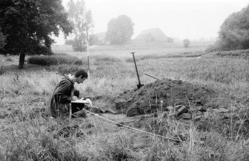Archeologie | Steenoven bij Genoenhof. Op de foto Jan Slabbers maakt de opgravingstekening. | Naborchweg | Swalmen | 1984 | ||||