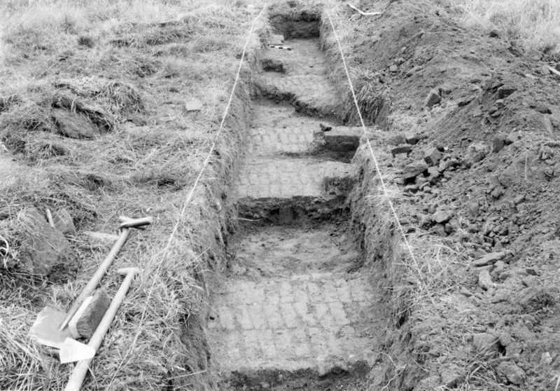 Archeologie | Klein gedeelte van de vloer van steenoven II met restant stookgang. Bij Genoenhof. | Naborchweg | Swalmen | 1984 | ||||