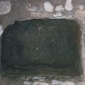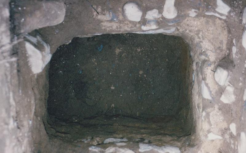 Opgraving kerk Ouddorp. Resten van de vloer voor het altaar. Op de voorgrond het altaarfundament. |