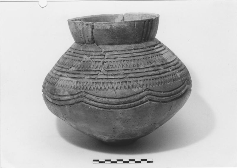 Kerbschnitt urn. De hier afgebeelde aardewerken pot is een zogeheten ‘kerbschnitt-urn’ uit de late bronstijd (1100-800 v. Chr.). Het was de tijd waarin de grafcultuur sterk veranderde. In plaats van het begraven van enkele overledenen onder grafheuvels werden de overledenen nu meestal gecremeerd en de verbrande botten en as in een urn gestopt. De urn werd vervolgens in een urnenveld begraven en bedekt met een laag heuveltje, vaak omgeven door een greppeltje. Urnenvelden Soms werden beenderr Meer ... |