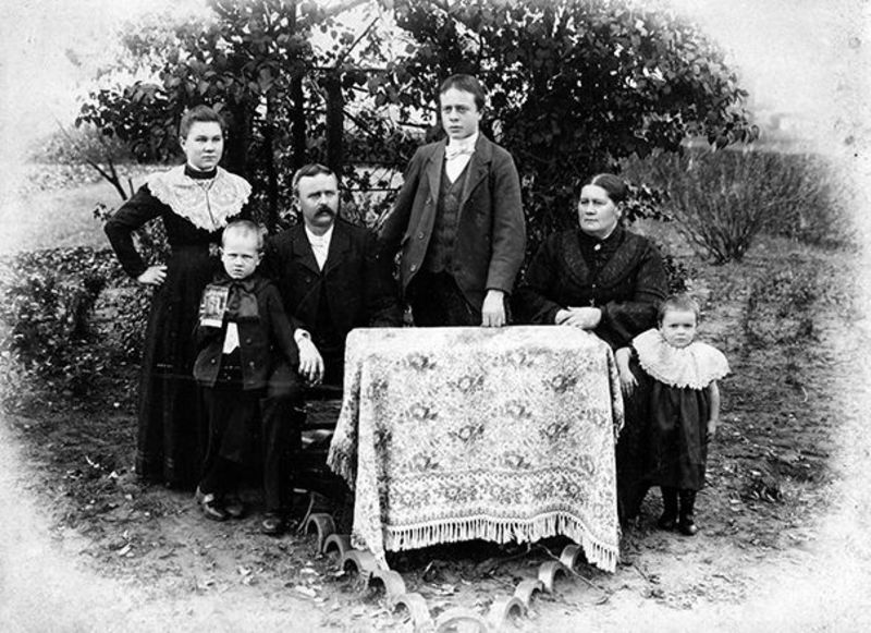 Diversen | Familie Peeters, Graad was getrouwd met H. Lammerschop. In het midden staat Coen Peeters, beide waren ze postbode in Reuver en Beesel, geboren in 1884. De latere zoon van Coen, Jo Peeters, was eveneens postbode. | Reuver | 1900 | |||||