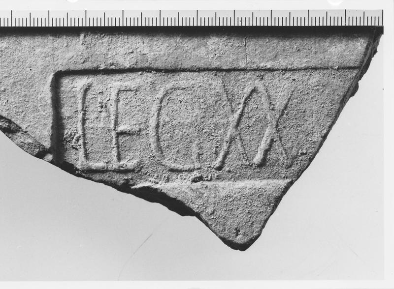 Archeologie | Dakpan met Romeinse stempel LEG XXX(VV) | Krekelsbergheide | Tegelen | 2-3de eeuw | ||||