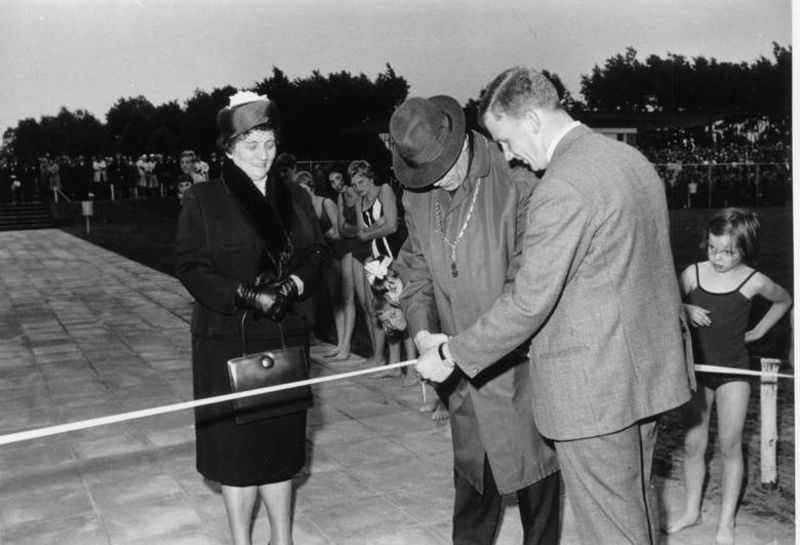 Sport & Recreatie | Zwembad De Bercken: de opening - burgemeester Mooren knipt het lint door. | Bösdaellaan 2 | Reuver | 29-6-1966 | 1966 | |||