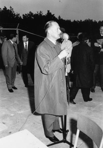 Sport & Recreatie | Zwembad De Bercken: De opening - gemeentesecretaris Hover gaat de genodigden en belangstellenden verwelkomen. | Bösdaellaan 1 | Reuver | 29-6-1966 | 1966 | |||