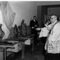 De Sint Jozefschool Offenbeek. Inzegening en in gebruikname van de school, na de uitbreiding, door kapelaan Ramaekers. Links achterin het hoofd van de school, Steeghs. |