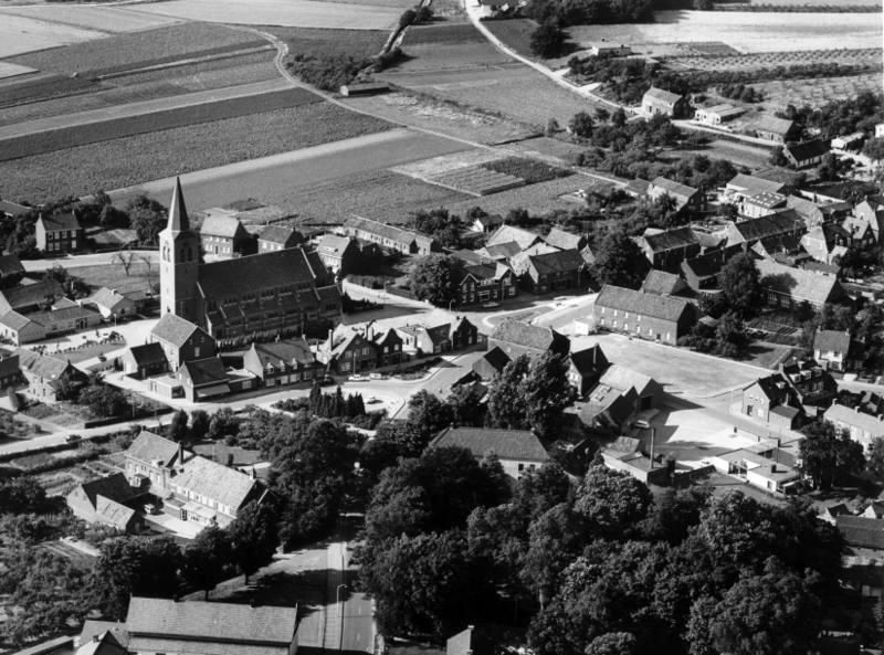 Luchtfoto's | Luchtfoto van het centrum van Beesel gezien vanuit het zuidoosten. | Markt | Beesel | 1970 | ||||