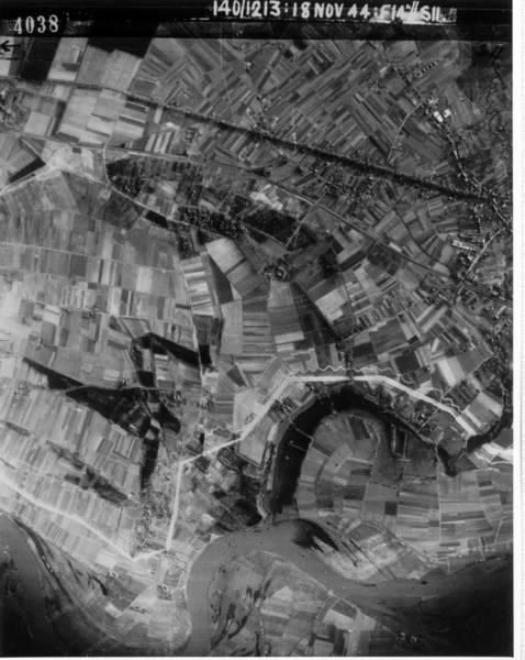 Luchtfoto's | Luchtfoto uit de 2de Wereldoorlog van Beesel / Reuver, gemaakt door de Royal Air Force ter hoogte van Rijkel en de dode maasarm. | Rijkel | Beesel | 18-11-1944 | 1944 | |||