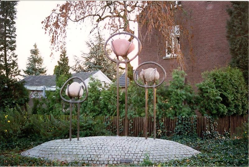 Kunstwerken | Kunstwerk op de hoek van de Past. Vranckenlaan-Burg. Claessenstraat, voorstellende de drie kernen. Kunstenaar Ben Tijbosch uit Herkenbosch. | Burgemeester Claessenstraat 2 | Reuver | |||||