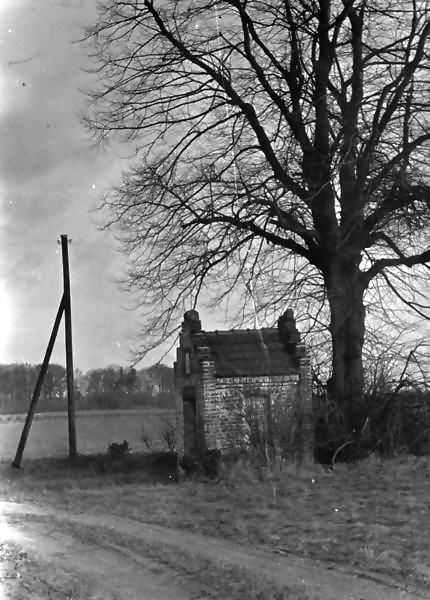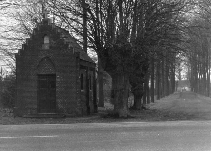 De Maria kapel bij kasteel Waterloo in Beesel met laan naar boerderij Oud Waterloo. In 1909 gaf de weduwe Van Nispen tot Sevenaer opdracht om op de fundamenten van een oudere kapel, gelegen langs de Rijksweg bij de oprijlaan naar Oud Waterloo, een nieuwe Mariakapel te bouwen. Dit gebouw werd in 1966 bij de reconstructie van het fietspad gesloopt. Het altaar heeft daarna jaren lang in opslag gelegen bij de Gemeente Beesel en is uiteindelijk hergebruikt in de kapel in het Bussereind (zie ID 12118 Meer ... |