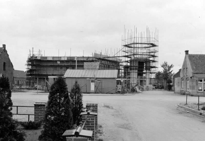 Kruising Annastraat - Keulseweg met de Fatimakerk in Offenbeek in aanbouw. Rechts De Paerssjtal. |