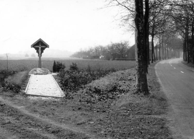 Kruisen & kapellen | Kapel Rijkel. In 1946 is de zwaar beschadigde kapel door eigenaar Geuyen (Dekkers-Frits) afgebroken en voor rekening van de buurt vervangen door het huidige kruis. | Rijkel 32 | Beesel | 1946 | ||||