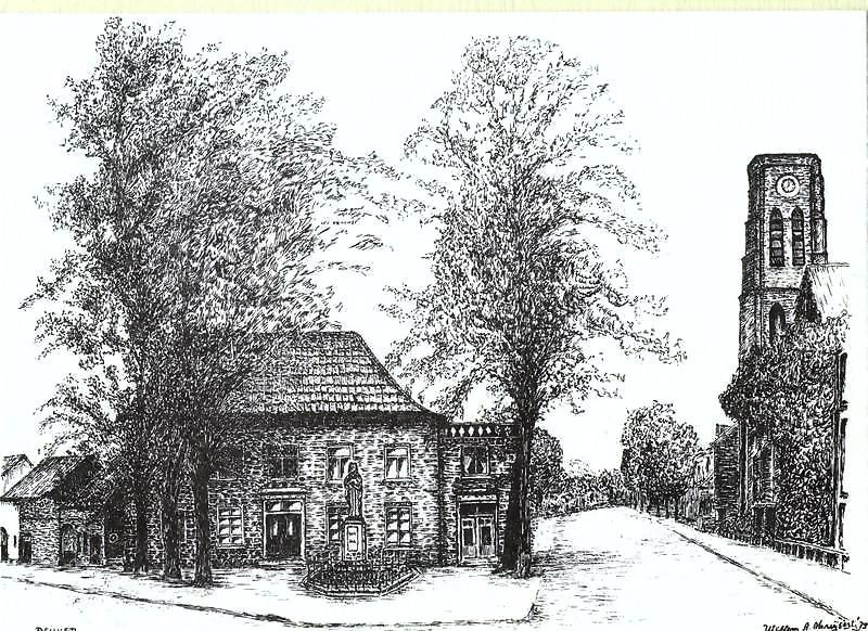 Gemeentehuis / Gemeentebestuur | Raadhuis en Sint Lamberuskerk te Reuver. Gemaakt in 1979 t.g.v. de opening van de Amro-bank aan de Past. Vranckenlaan 40 te Reuver. | Rijksweg 41 | Reuver | 1950 | ||||