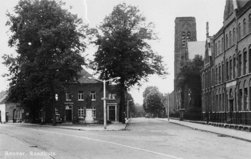 Gemeentehuis / Gemeentebestuur | Prentbriefkaart met hierop het oud gemeentehuis en rechts de kerktoren van de Sint Lambertuskerk zonder spits. | Rijksweg 41 | Reuver | 1950 | ||||