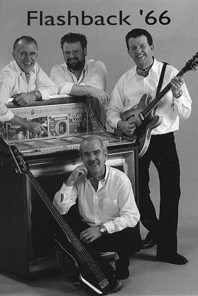 Verenigingen en organisaties | Het orkest Flashback '66 met van links naar rechts: 1 Frans van Heughten, 2 Hennie van Eewijk, 3 Ton Wilms (hurkend), 4 Jack Schattorie. | Reuver | 1980 | |||||