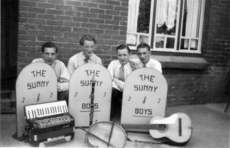 Orkesten uit de jaren vijftig van de twintigste eeuw. The Sunny boys vlnr : Gerrit Schatorie (accordeon), Jac Meusen (klarinet), Hein Bouten (gitaar), Frans Schatorie (drums) |