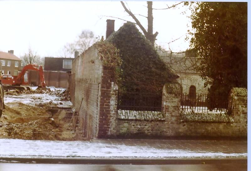 Fabrieken / Bedrijven | Sloop van de stroopfabriek van Timson in Beesel. Midden de portierswoning van pand De Mortel. | Kroetpers | Beesel | 25-1-1984 | 1984 | |||