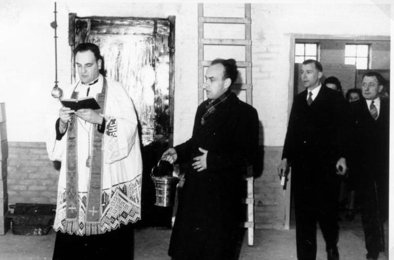 Opening en inzegening van de Metaco te Reuver. Op de foto kapelaan Leo Dirix en koster Pierre Pubben. |