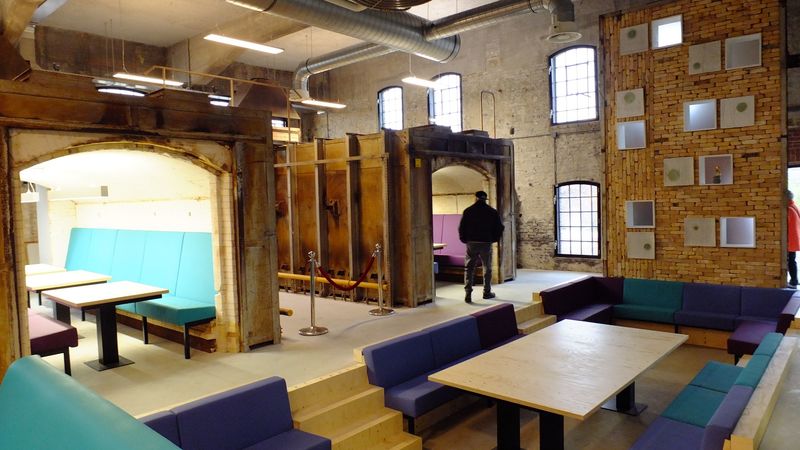 Open dag op het Grèscollege. De vroegere ovens zijn nu ingericht als spreekruimtes van o.a. de Rabobank. |