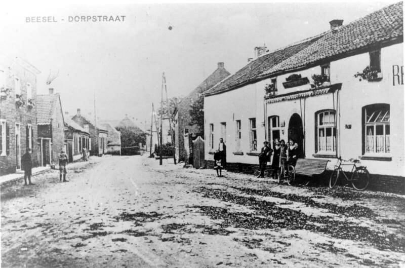Wegen | Prentbriefkaart met hier op de Dorpsstraat in Beesel. Tegenwoordig heet deze straat de Monseigneur Theelenstraat. Rechts café "Betje", gesloopt in 1948. | Monseigneur Theelenstraat | Beesel | |||||