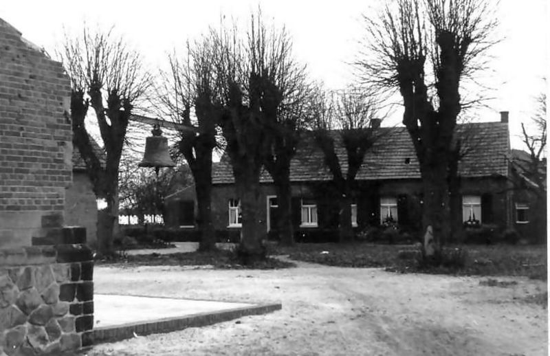 Wegen | De woning achter de kerk in Beesel. Tussen de bomen hangt de klok die na de oorlog tot de bouw van de nieuwe toren als kerkklok dienst heeft gedaan. Zichtbaar is het pand aan het Kerkpad 38, | Kerkpad 38 | Beesel | |||||