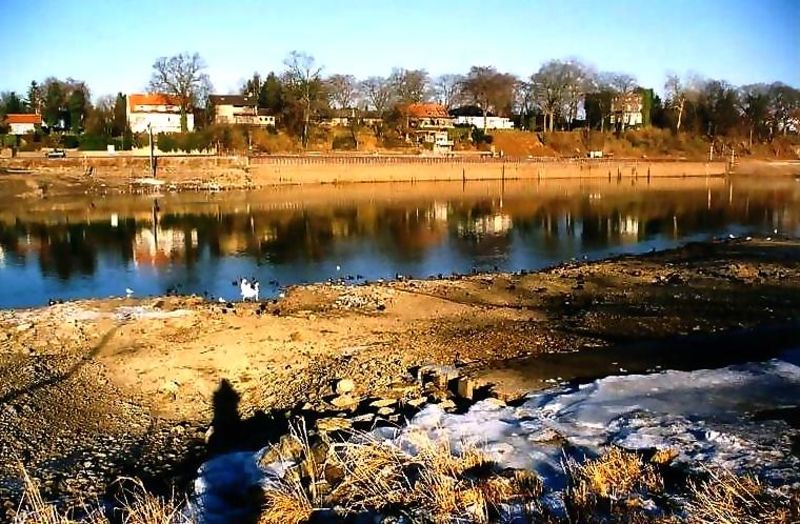 Wegen | Laag water in de Maas met zicht op Kessel. | Sint Jorisstraat | Beesel | 1997 | ||||