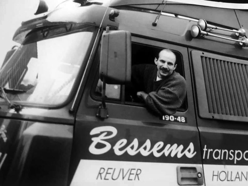 Fabrieken / Bedrijven | Jan Koopmans (oud wethouder van de Gemeente Beesel) op de vrachtwagen van de firma Bessems. | Reuver | ||||||