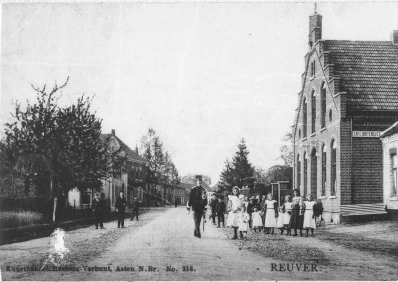 Wegen | Prentbriefkaart met hierop de Rijksweg met links de markt en rechts café Buitenlust (nu Luxor). De markt in Reuver is dan nog de tuin van Pieter Hendrik van der Velden (Brouwer van beroep en wonend in de woning direct naast de tuin). | Rijksweg 18 | Reuver | |||||