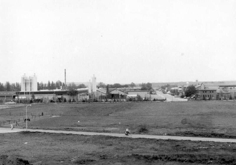 Zicht op de Charles Ruysstraat met links de silo‘s voor de Westerwaldklei van de Steenbok en rechts de Thielco Zie ook de YouTube film op onze mediabank met iD 9584 |