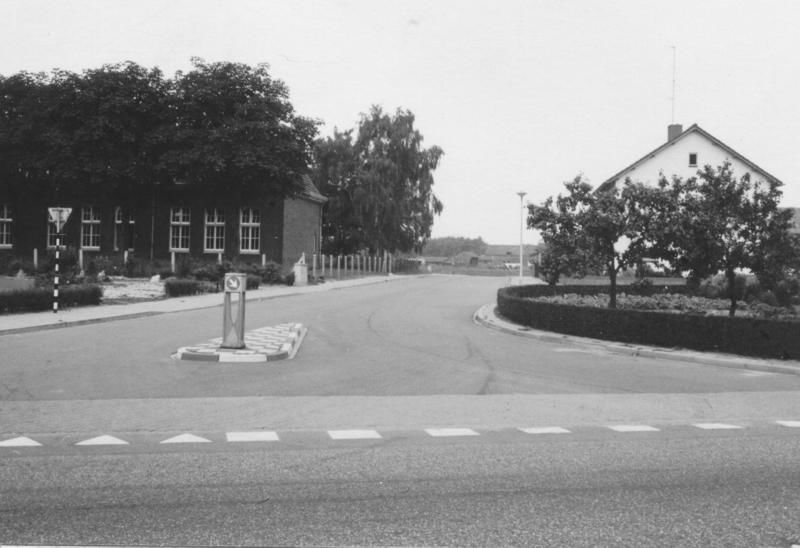 Wegen | Kruising Rijksweg - Sint Barbarastraat met links oude kleuterschool (bewaarschool) | Sint Barbarastraat | Reuver | 1966 | ||||