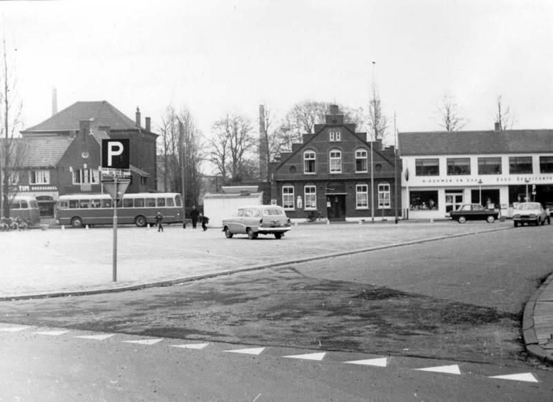 Wegen | Het nieuwe marktplein Reuver is gereed. Op de achtergrond zien we boekhandel Tim, cafè / bioscoop Luxor en garage Dohmen. | Raadhuisplein | Reuver | 1964 | ||||