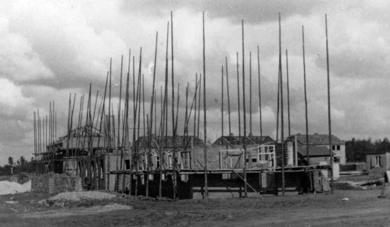 Wegen | Bebouwing van het Reuversveld. We zien de bouw van de woningen aan de Parklaan. Op de achtergrond de Pastoor Rijnderslaan Toen waren de steigerpalen nog geheel van hout. | Parklaan | Reuver | 1948 | ||||