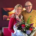 Het echtpaar Hutz - Konings vierde haar 60 jarig huwelijksfeest. Waarnemend burgemeester Wil Rutten ging bij hen langs met een bloemetje. |