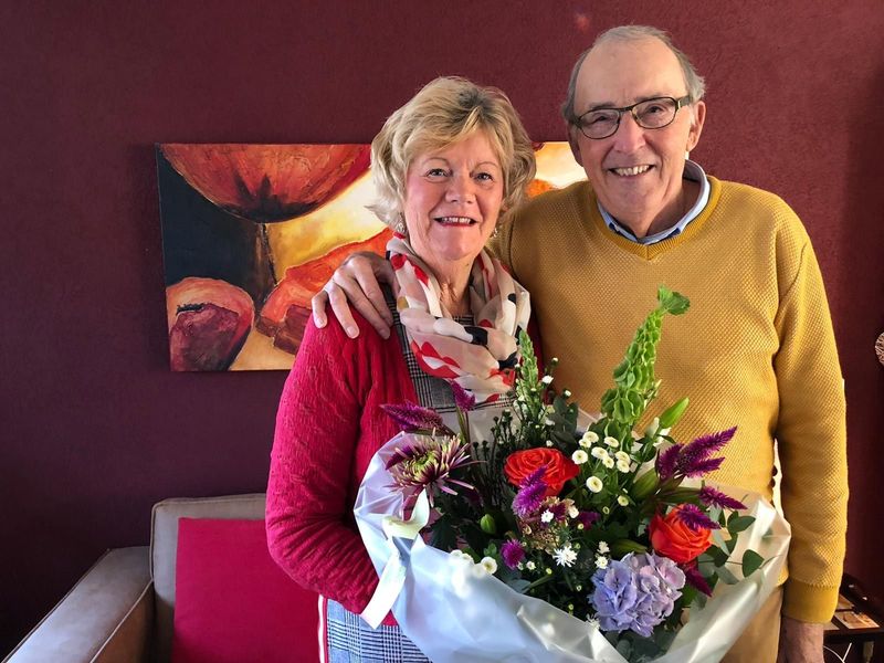 Gebeurtenissen | Het echtpaar Jo en Lenie Stroucken - van Rijswick viert haar 50-jarig huwelijksjubileum. Waarnemend burgemeester Wil Rutten ging bij hen langs met een bloemetje. | Beesel | 20-12-2019 | 2019 | ||||