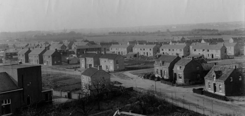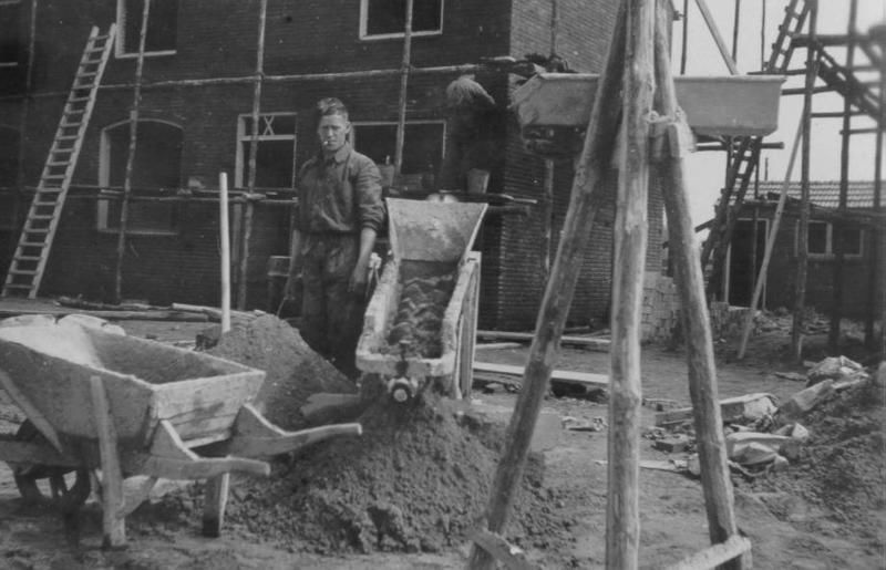 Bouwactiviteiten in het Reuversveld; Pastoor Rijnderslaan 1948. Op de foto staat Siem Ligthart. |
