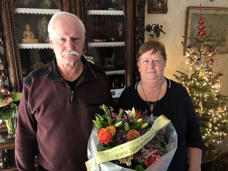 Gebeurtenissen | Het echtpaar Har en Liesbeth Van Dijck - Bergs viert haar 50-jarig huwelijksjubileum. Waarnemend burgemeester Wil Rutten ging bij hen langs met een bloemetje. | Reuver | 18-12-2019 | 2019 | ||||