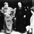 Kerk en religie | Pastoor van de Broek, mgr Moors en deken Stoot voor de deur van de Sint Lambertuskerk. | Karel Doormanlaan 2 | Reuver | 1963 | ||||